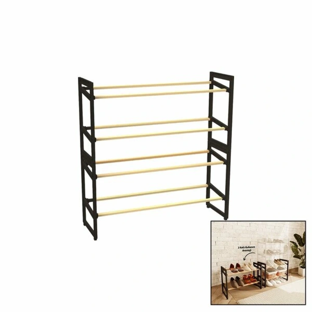 ChatGPT:4 KATLI AHŞAP AYAKKABILIKÜrün Özellikleri4 katlı ahşap ayakkabılık, şık ve modern tasarımıyla evinizin düzenini kolayca sağlamanıza yardımcı olur. 20x65x51 cm boyutundaki kompakt yapısı sayesinde az yer kaplar ve dar alanlarda bile rahatlıkla kullanılabilir. Hem ayakkabılık hem de çok amaçlı raf olarak değerlendirilebilen bu ürün, portatif yapısıyla kolay taşınabilir. Vidasız pratik montaj özelliği sayesinde ekstra bir alete gerek kalmadan hızlıca kurulabilir. Hem dört raflı olarak hem de ayrı ayrı 2 katlı iki ayakkabılık olarak kullanma avantajı sunar.Ahşap rafları ve sağlam metal yan profilleri dayanıklı kullanım sunarken, dekoratif görünümüyle evinize estetik bir hava katar. Hem giriş alanlarında hem de balkon, yatak odası veya kiler gibi farklı mekânlarda düzen sağlamak için idealdir.Paket İçeriği1 adet 4 Katlı Ahşap Ayakkabılık 1 adet 4 Katlı Ahşap Ayakkabılık